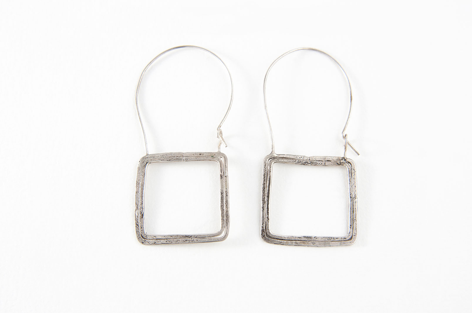Textured squares defined by the contrast between the hammered material and the elongated oval ear wires make a casual and chic design.