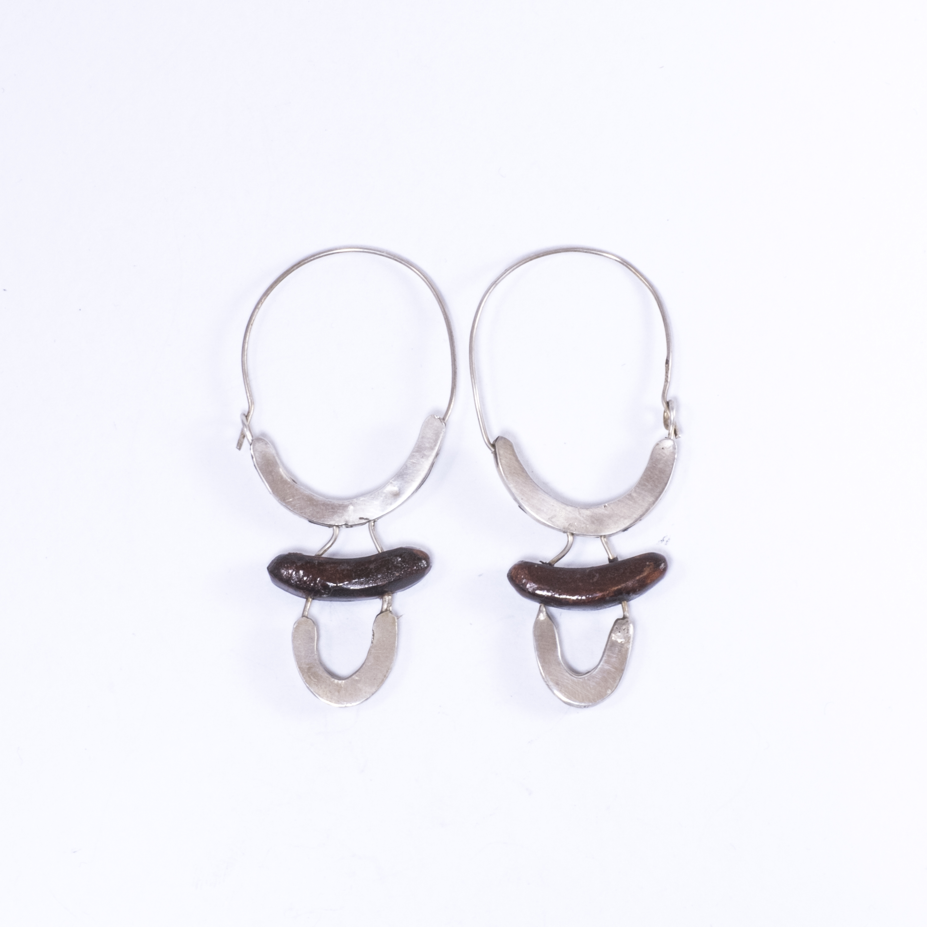 Modern and sculptural, this piece represents a necklace shape in the form of an earring. It came about as a result of experimentation with different materials and geometric ideas.